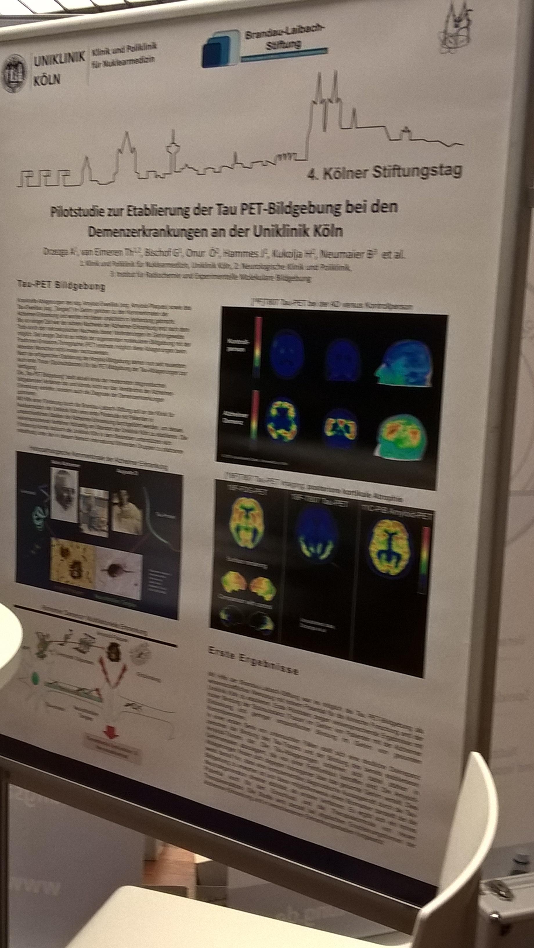 Mit Hilfe einer Förderung durch die Brandau-Laibach-Stiftung soll an der Klinik für Nuklearmedizin der Uniklinik Köln eine erste Pilotstudie mit Patienten in unterschiedlichen Stadien der Alzheimer-Erkrankung durchgeführt werden, um dieses vielversprechende Verfahren frühzeitig am Standort der Uniklinik Köln zu etablieren.